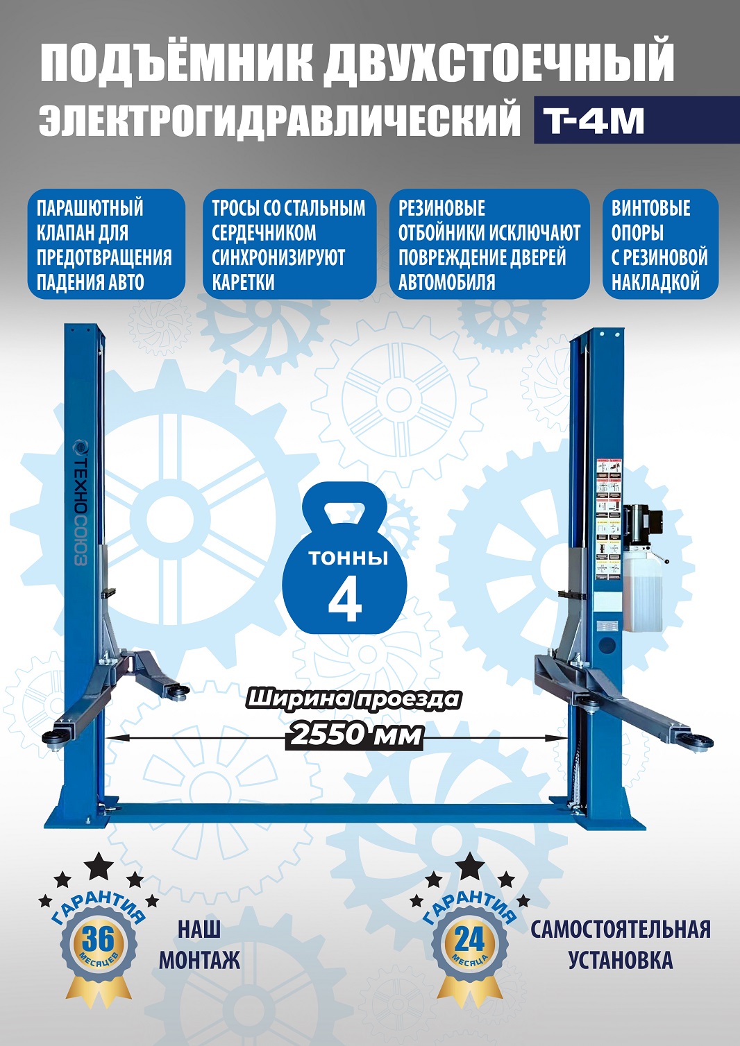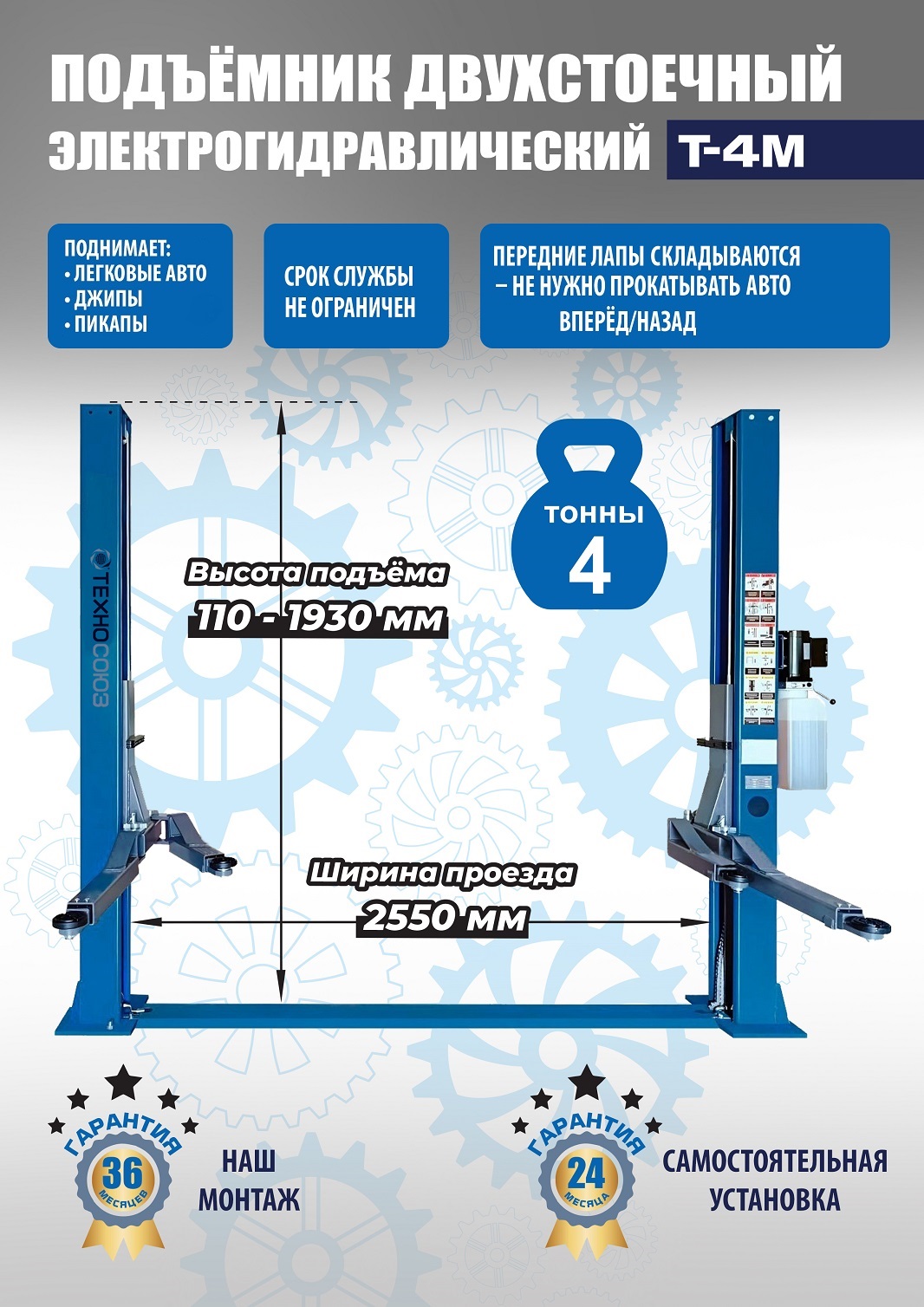 Автомобильный подъемник двухстоечный электрогидравлический Т-4М