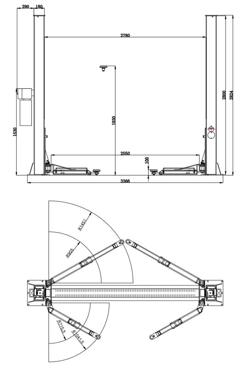 Расстояние между колонами подъемника, мм. 2780