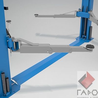 Двухстоечный электрогидравлический подъемник ПГА-4000-НС (ручка-съем) с трехсекционными подхватами позволяющие поднимать длиннобазные автомобили типа "ГАЗель" Предназначен для легковых автомобилей и внедорожников общей массой до 4 т.