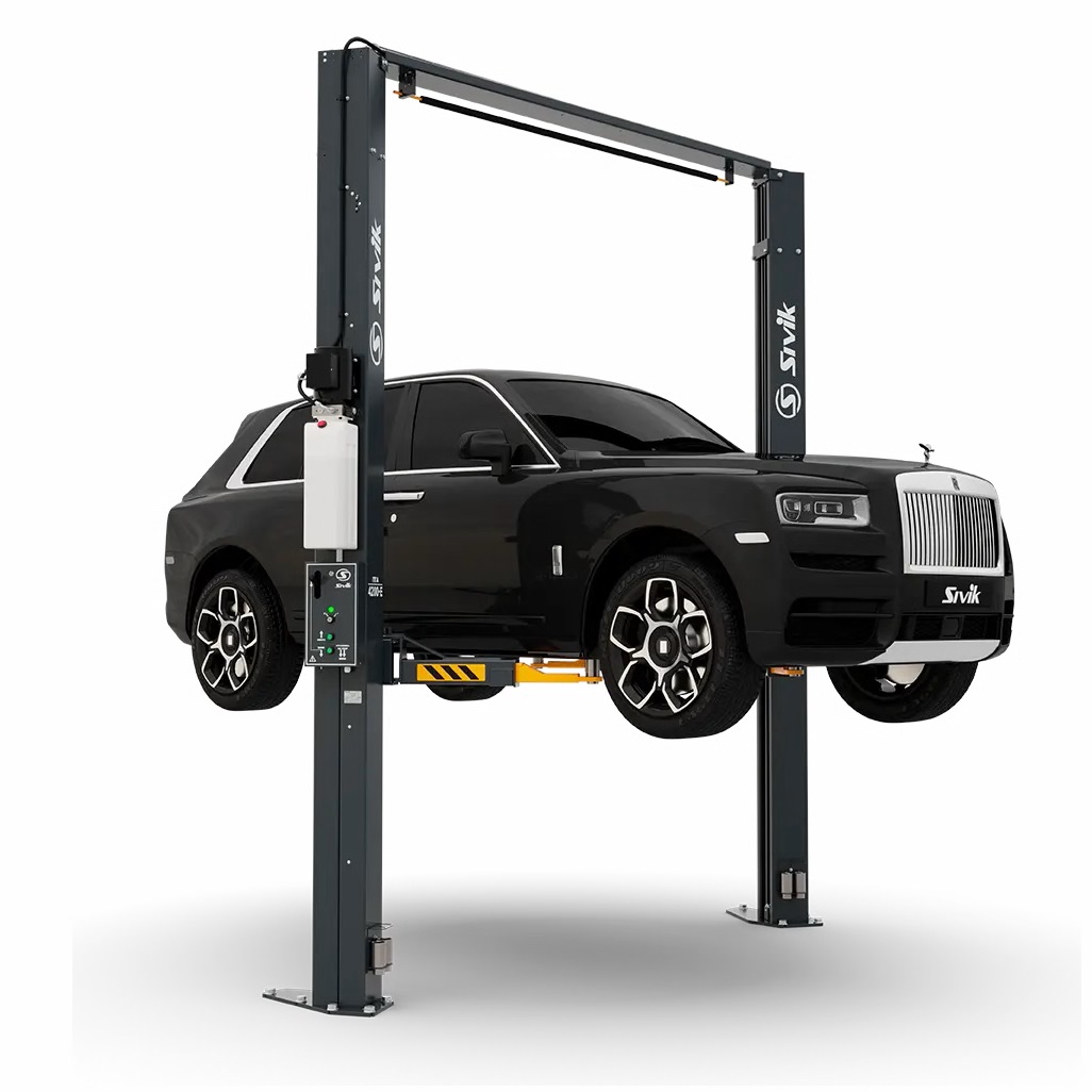 Подъемник двухстоечный электрогидравлический с верхней связью 4200-Е (высота колонны 4047 мм) предназначен для легковых автомобилей и внедорожников общей массой до 4,2т. Надежная ассиметричная конструкция подъемника с верхней связью для комфортного и безопасного выполнения любых слесарных работ.
