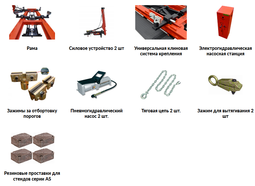 Усиленные зажимы за отбортовку порогов имеют оригинальную конструкцию разработанную с учетом устранения эффекта сползания и срыва. Узел сопряжения зажима со стойкой фиксации позволяет закрепить автомобиль с искривленной геометрией порогов не ограничивая дальнейших перемещений детали кузова в плоскости и одновременно удерживать его в момент исправления. Конструкция зажимов не имеет аналогов и разработана с учетом опыта и пожеланий российских мастеров кузовного дела.