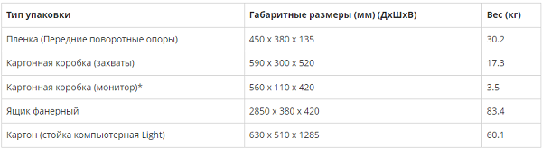 Стенды ТехноВектор доставляются в специальной таре, количество мест и габариты приведены в таблице: