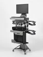 Компьютерная стойка представляет собой металлическую конструкцию. Стойка крепится на вертикальной опоре корпуса видеокамер или к полу.
