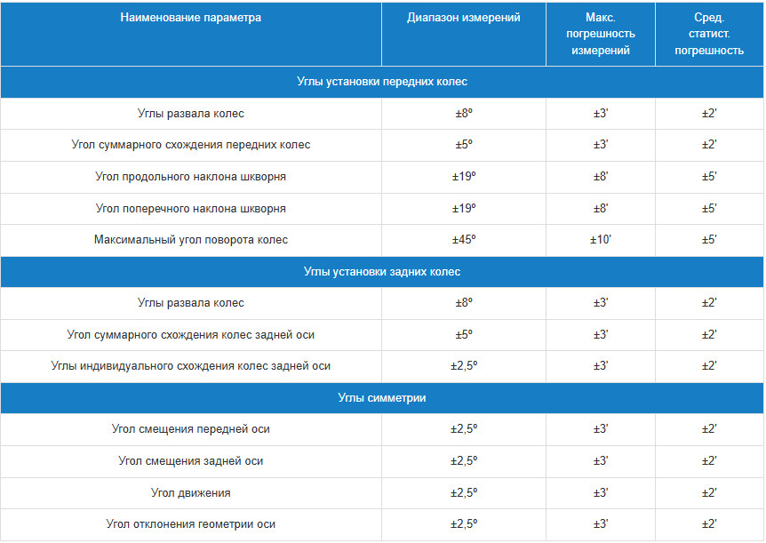*** - только при измерении в плоскости автомобиля. Для проведения измерений относительно горизонтальной плоскости необходимо выполнить процедуру определения горизонта.
