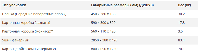 Стенды ТехноВектор доставляются в специальной таре, количество мест и габариты приведены в таблице: