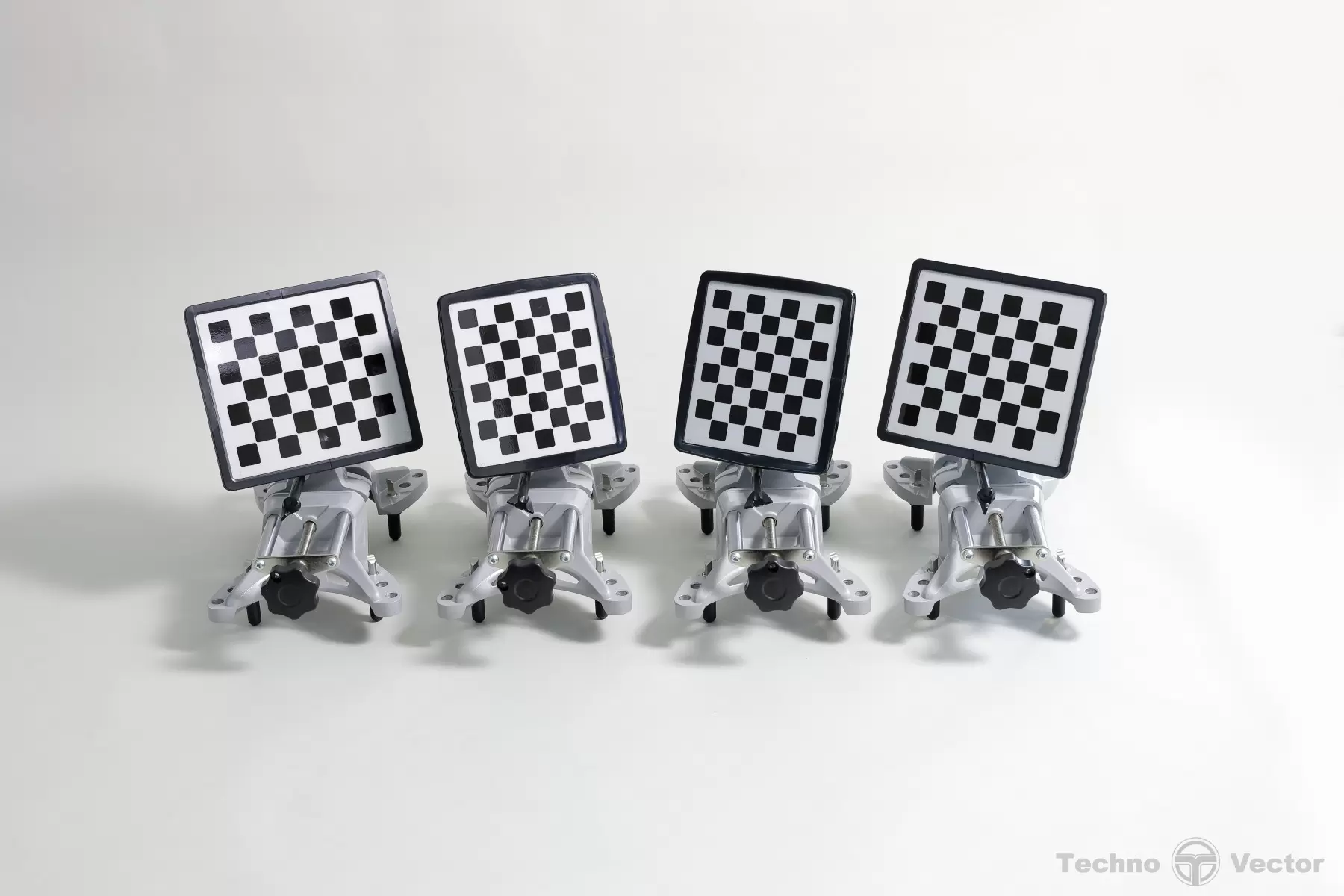 Функционирование приборов основано на измерении угловых параметров, определяющих положение осей и колес автомобиля с помощью видеокамер и плоских мишеней с градиентным рисунком.