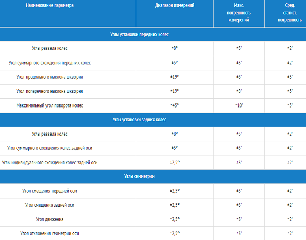 Функционирование приборов основано на измерении угловых параметров, определяющих положение осей и колес автомобиля с помощью видеокамер и плоских мишеней с градиентным рисунком.