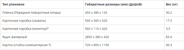 Стенды ТехноВектор доставляются в специальной таре, количество мест и габариты приведены в таблице: