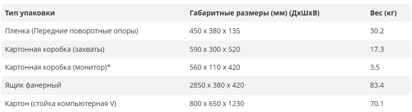 Стенды ТехноВектор доставляются в специальной таре, количество мест и габариты приведены в таблице:
